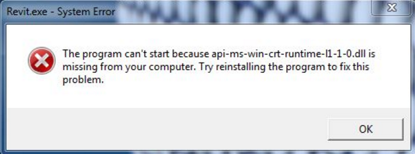 Revit 2017 Start Up Error Api Ms Win Crt Runtime L1 1 0 Dll Is