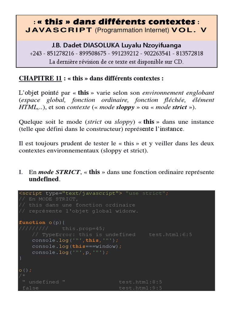 La Variable This Dans Differents Contextes En Javascript